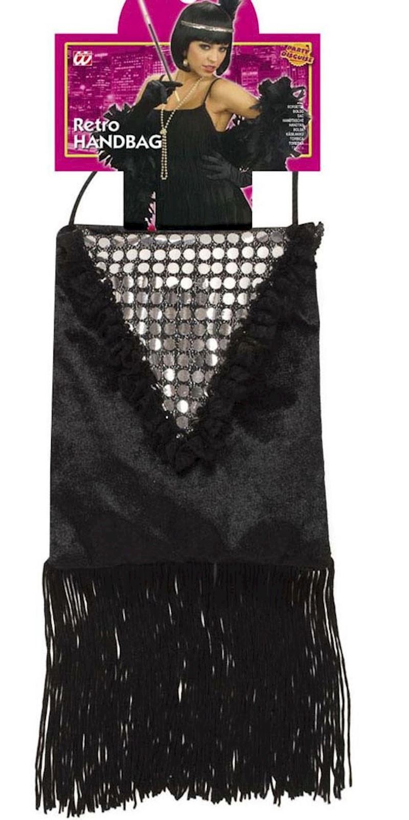 Samt Handtasche schwarz mit Pailletten, 18x4.5x25 cm