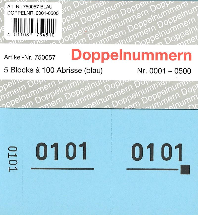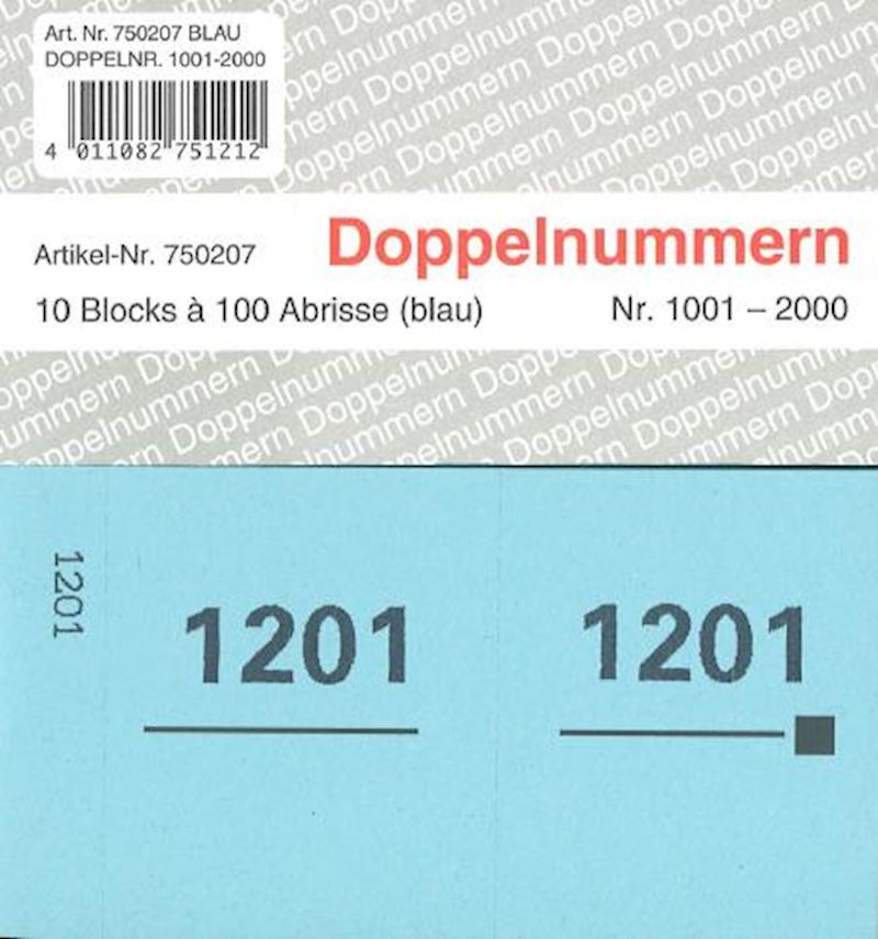 Doppelnummern Serie 1-1000 blau mit Loch 100x40mm
