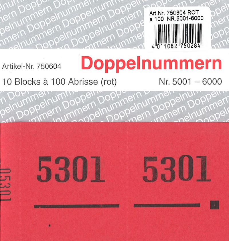 Doppelnummern Serie Nr. 1-1000 rot 120x60mm