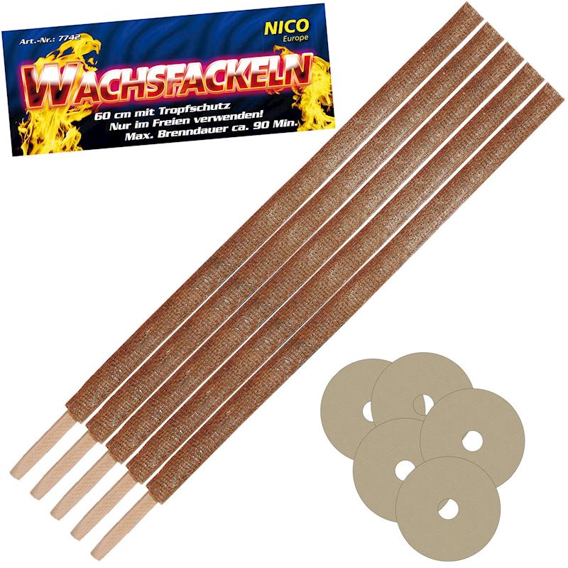 Wachsfackeln 5er Beutel 60 cm Brenndauer ca. 1.5 Stunden