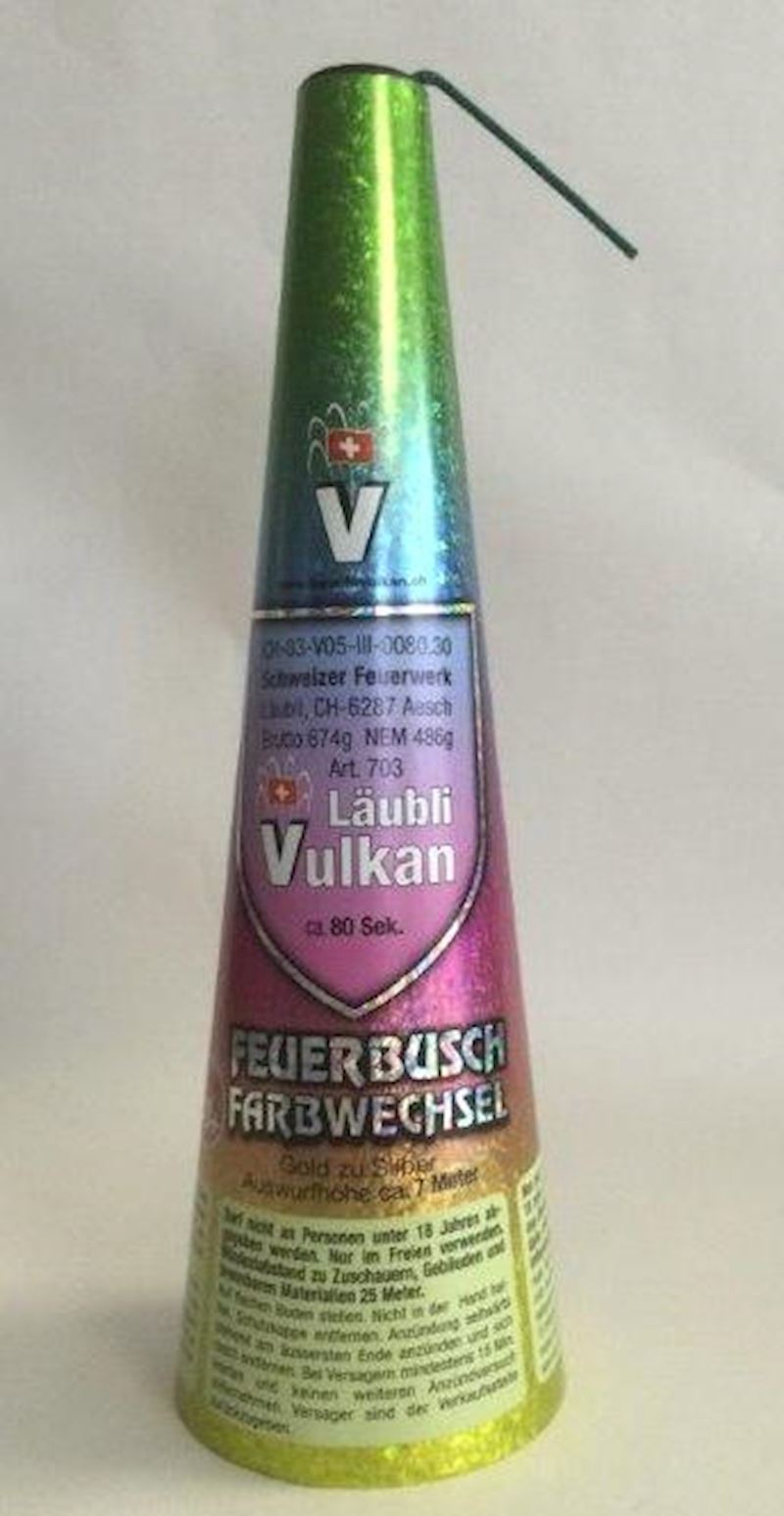 Vulkan Feuerbusch Farbwechsel Kat. F3, ca. 7 m, ca. 80 s.