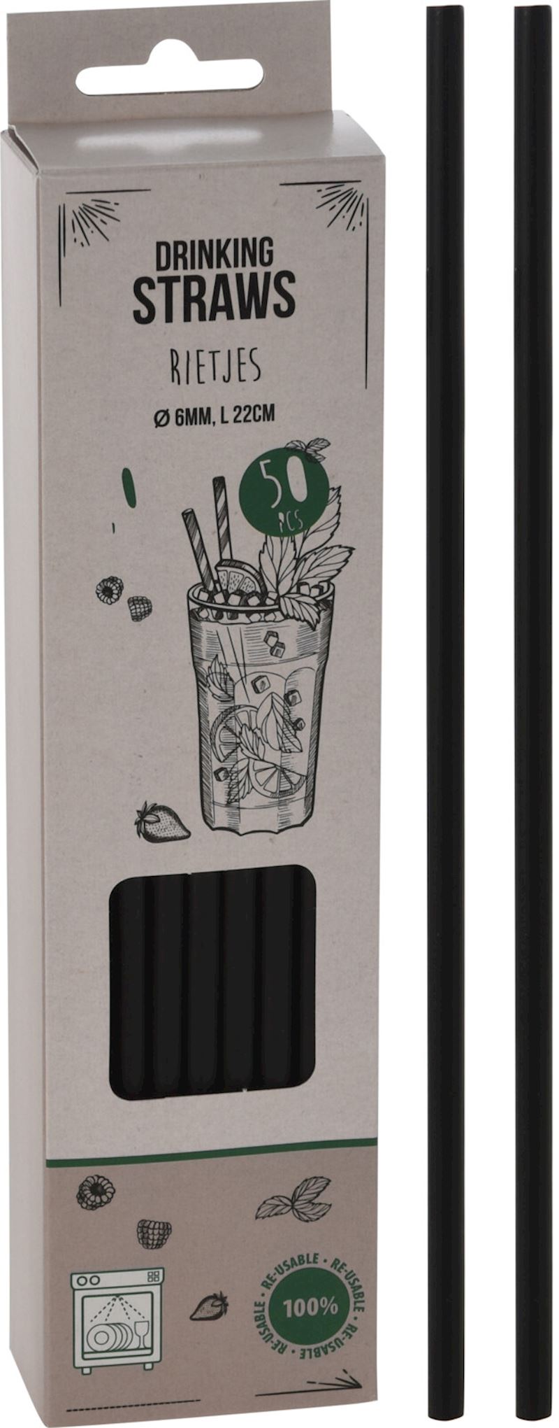 Trinkhalme schwarz 50 Stk. 22 cm/6 mm waschbar