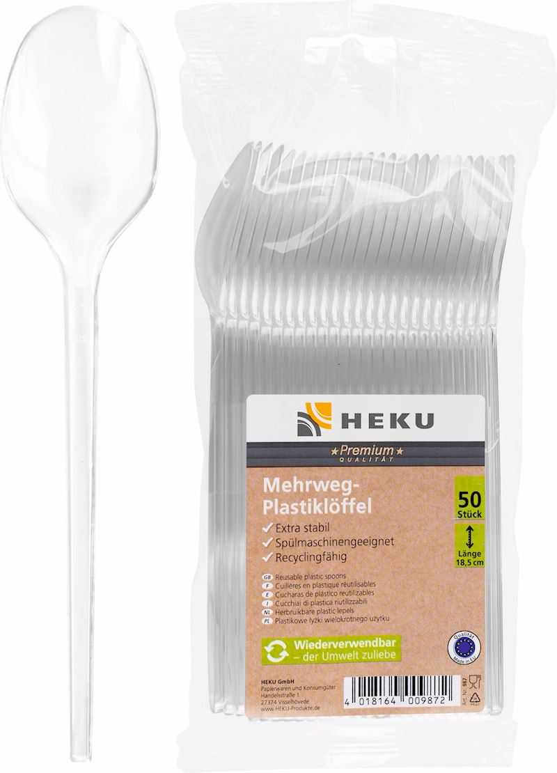 Mehrweglöffel PS, klar 18.5 cm, 5.6 g, 50 Stk.