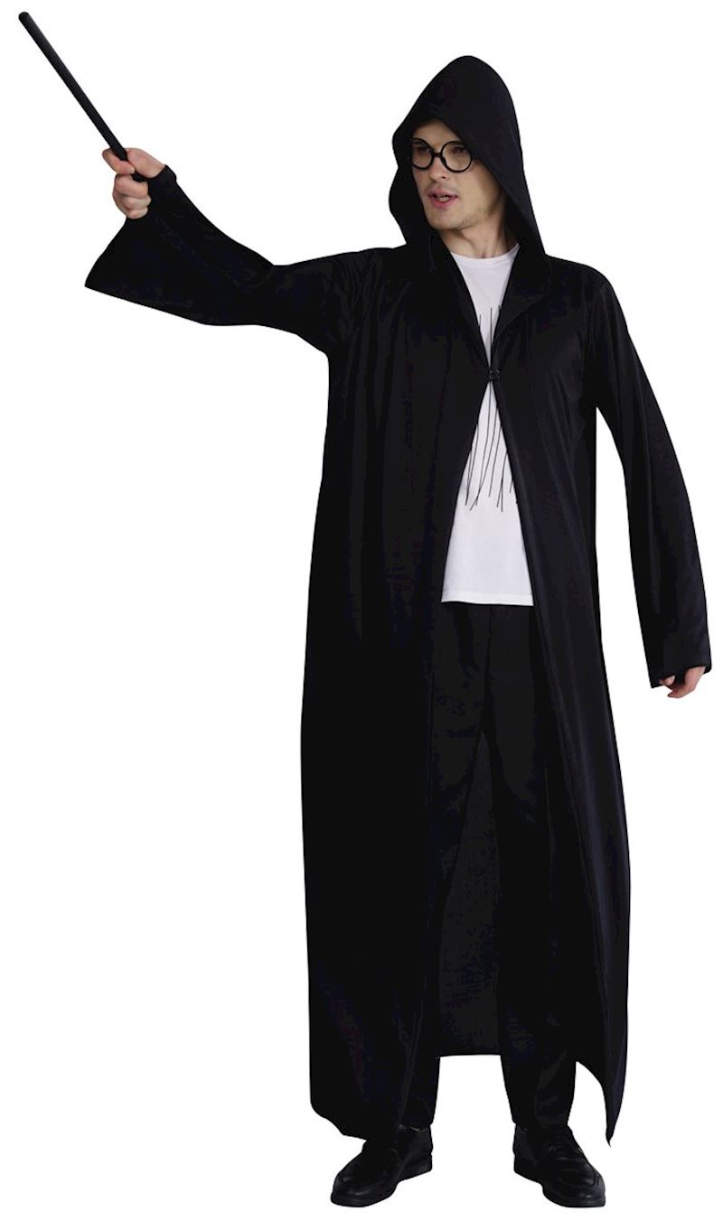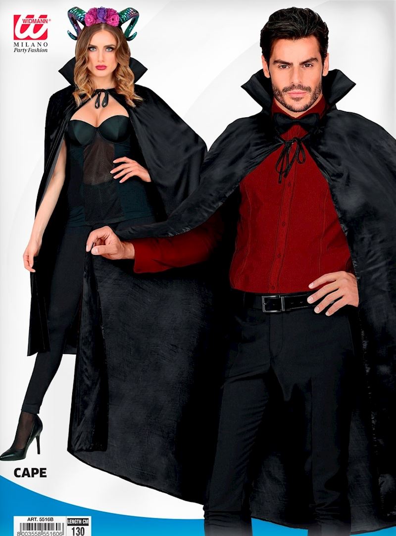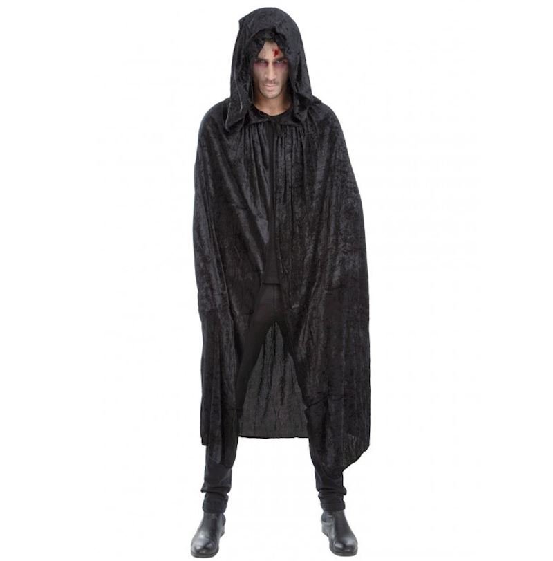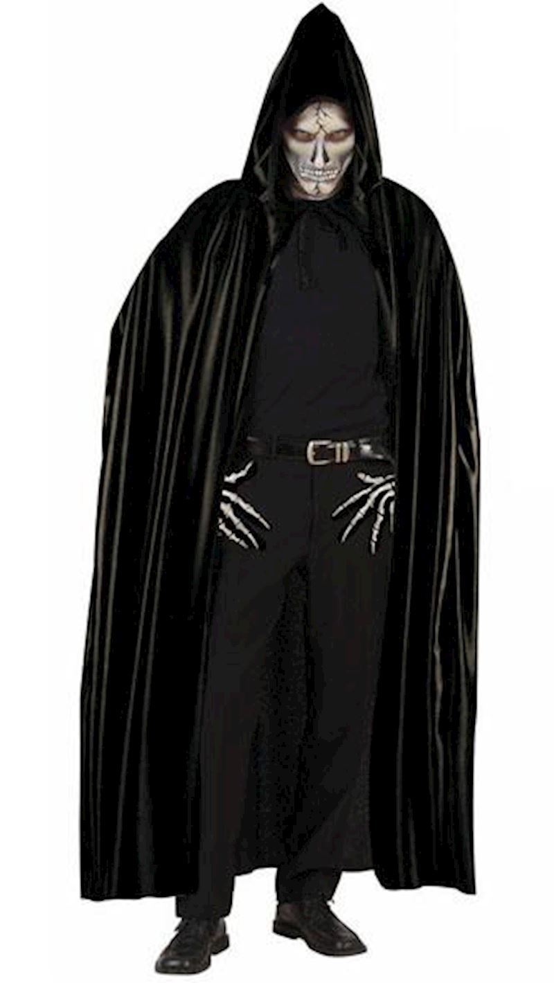 Umhang Satin mit Kapuze schwarz 145 cm lang