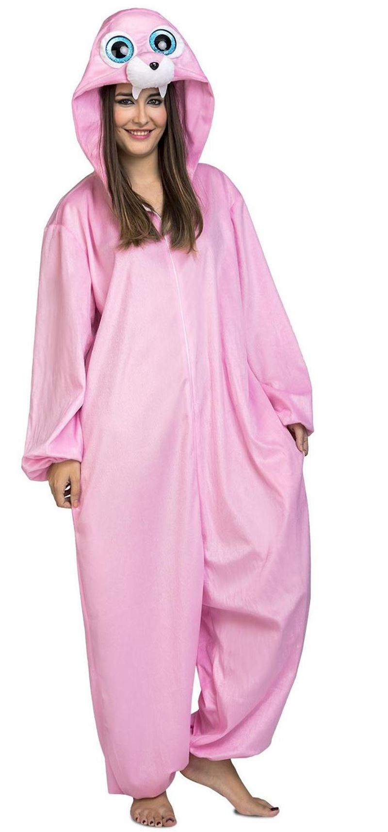 Kostüm Bär Plüsch rosa Gr. M/L Jumpsuit mit Kapuze