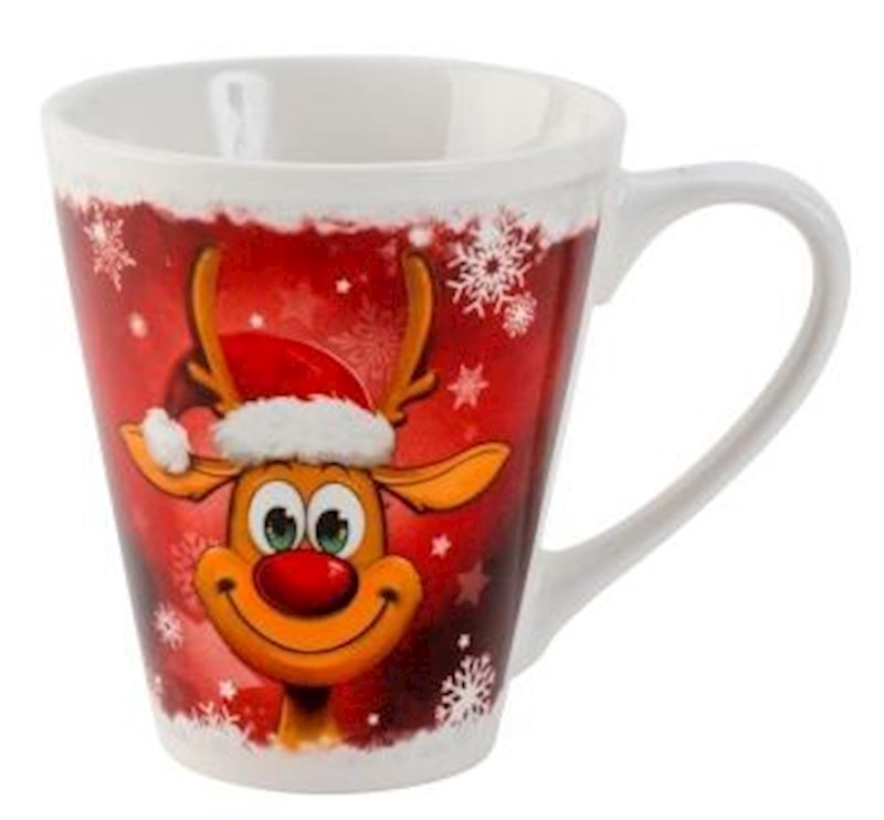 Tasse mit lustigem Rentier Weihnachten, 9.5x8 cm rot