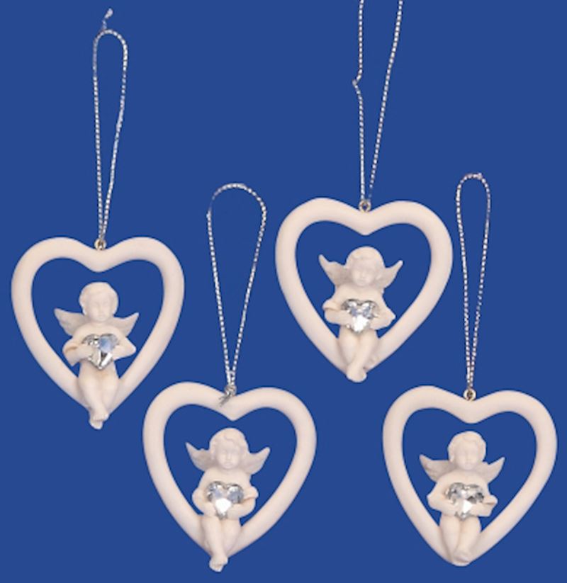 Engel sitzend mit Herz weiss, 5.5cm, 4 sort