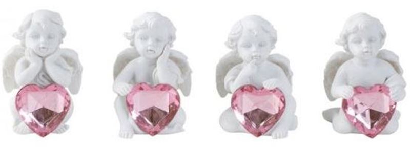 Sitzender Engel mit rosa Herz weiss 5x4.5cm 4 sort