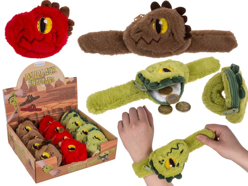 Schnapparmband Plüsch Dino Reissverschlussbeutel 3 sort.