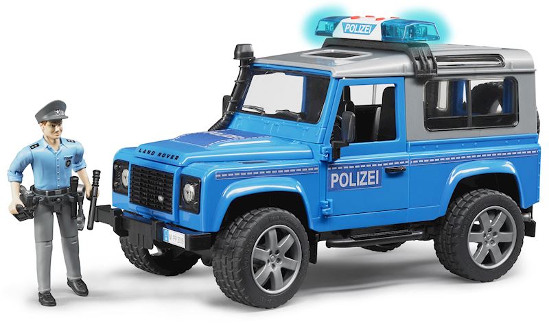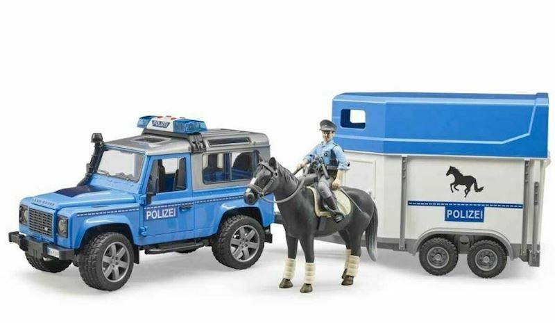 BRUDER Land Rover Defender Polizeifahrzeug mit Pferde-