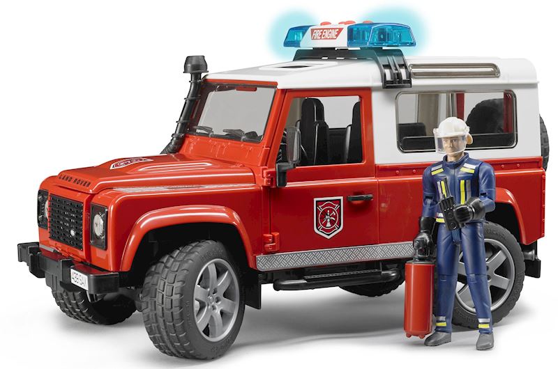 BRUDER Landrover Defender Station Feuerwehreinsatzw.+