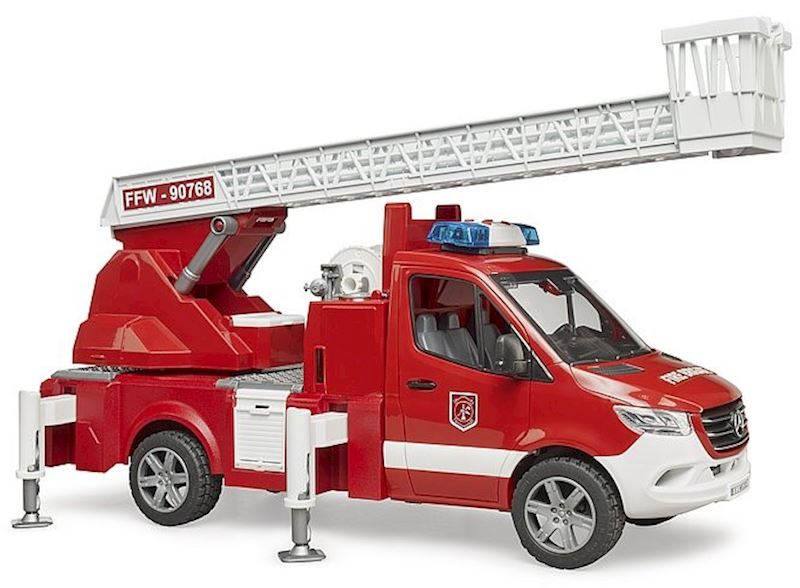 BRUDER MB Sprinter Feuerwehr mit Drehleiter, Pumpe, Licht