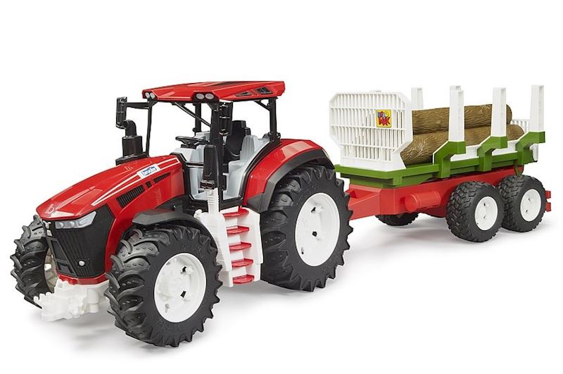 Roadmax Traktor mit Anhänger und drei Baumstämmen
