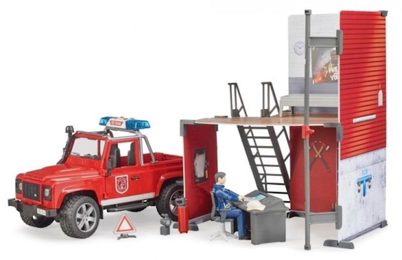 BRUDER bworld Feuerwehrstation mit Land Rover Defender und