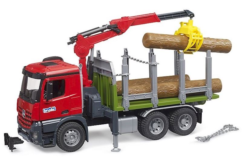 BRUDER MB Arocs Holztransport LKW mit Ladekran, Greifer u.