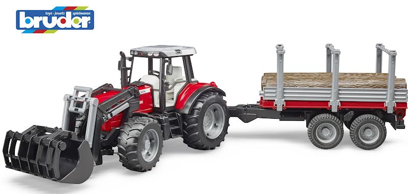 BRUDER Rückeanhänger mit mit Ladekran Greifer und 4