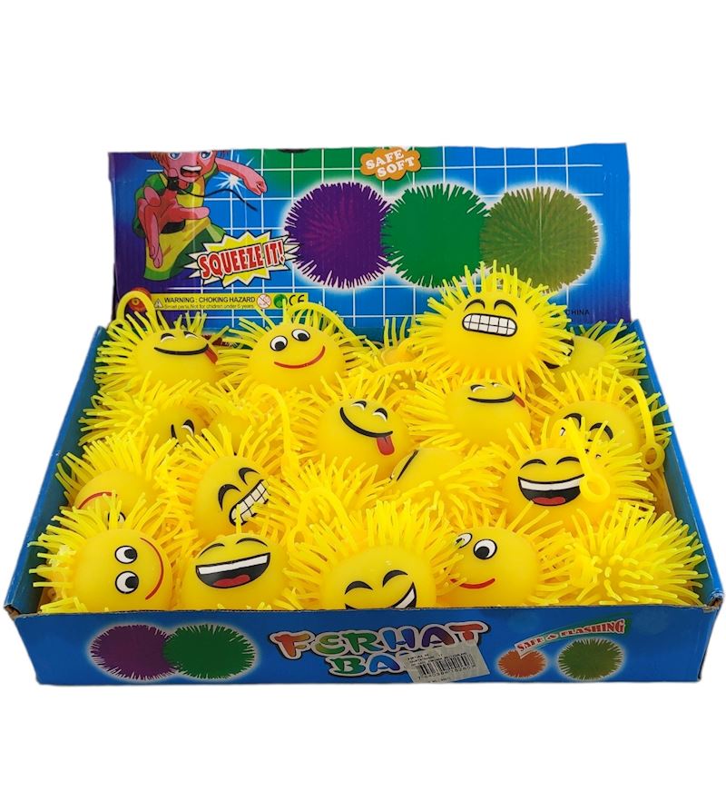 Aktion Liquidation Artikel-Nr. 80974 Quetschball Emojiface sort. 55 mm gelb, Stressball im Netz ab Lager
