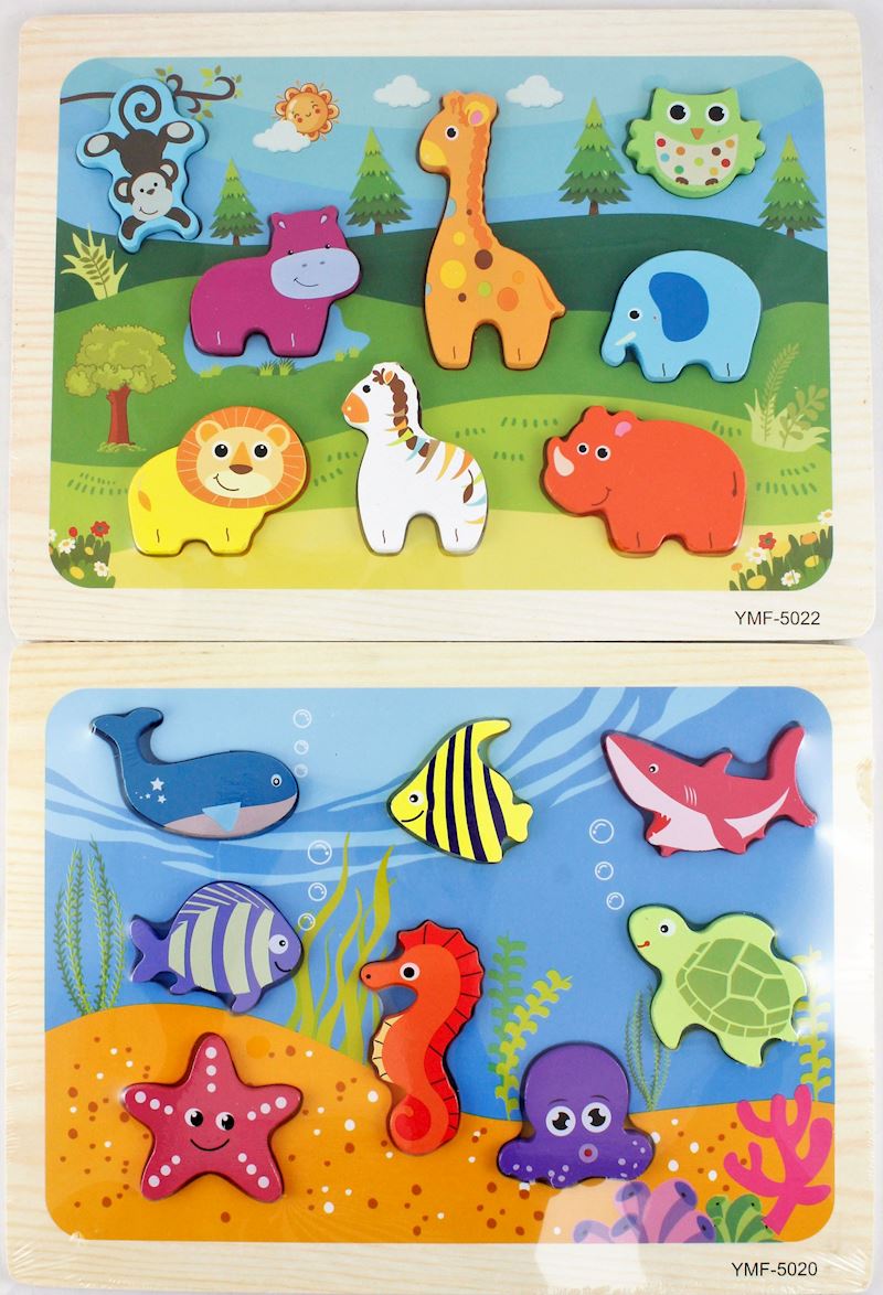 Puzzle aus Holz 9 tlg. 22x30cm Tiermotive 2xsort.