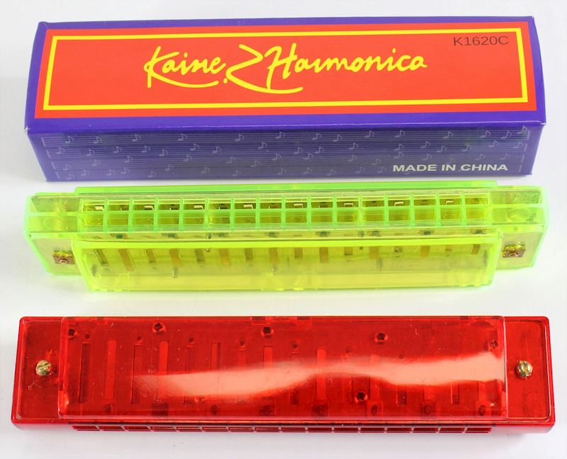 Mundharmonika 16 Loch grün & rot transparent 13cm
