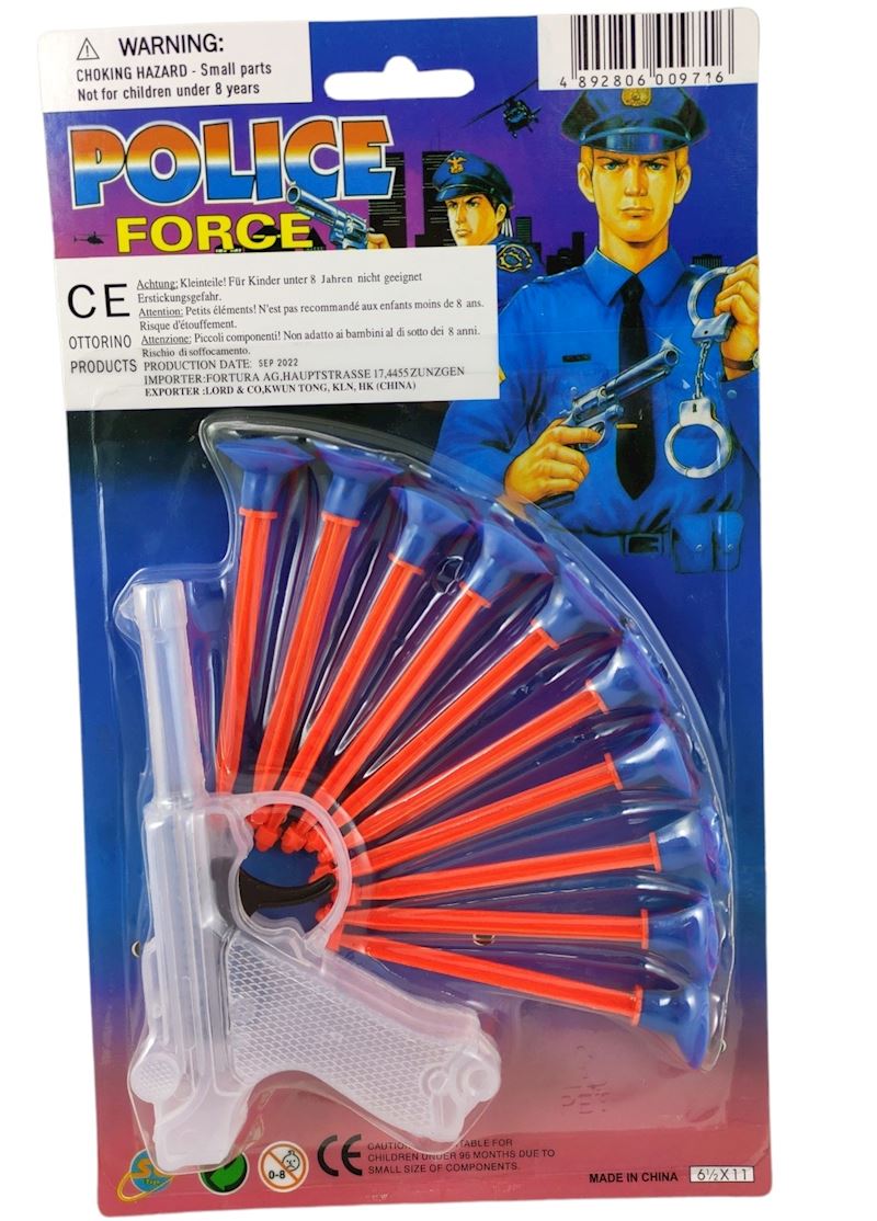 Aktion Liquidation Artikel-Nr. 50180 Pfeilpistolenset Police Force mit transparenter Pistole ab Lager