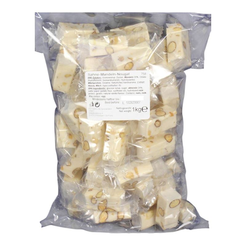 Nougat 50gr. Sahne-Mandeln mit Pistazien, kurz, Carlier