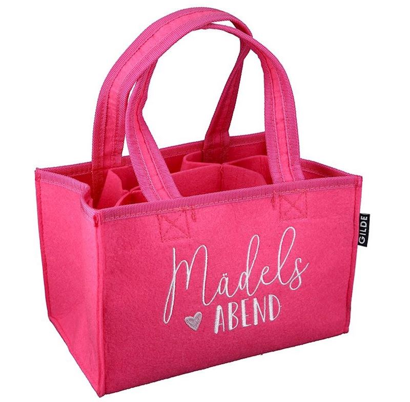Filztasche Mädelsabend pink für 6 Flaschen, 24x15 cm