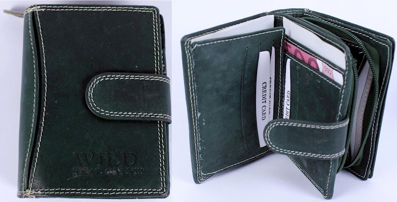 Geldbörse Leder grün klein querformat 8x10,5cm Real