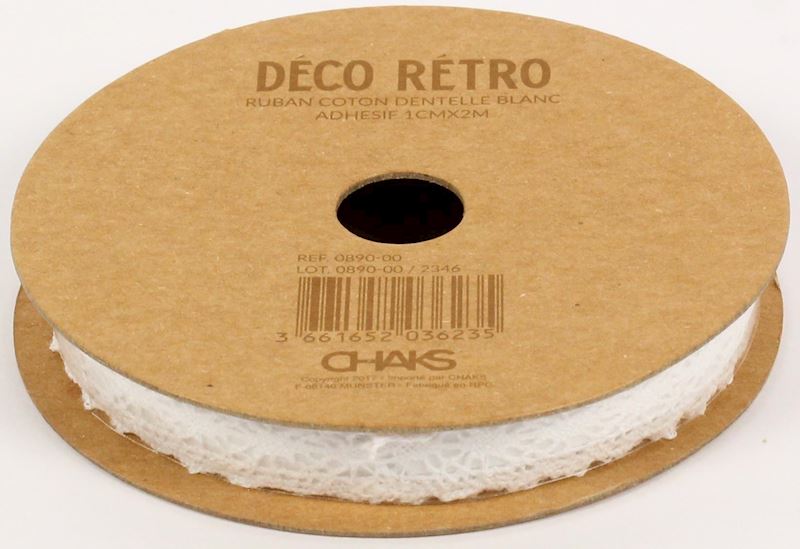 Baumwolle Spitzenband 1 cmx2 m weiss, selbstklebend