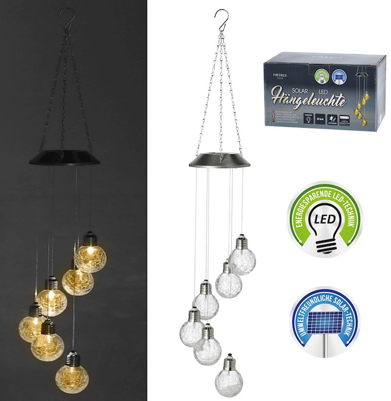 Aktion Liquidation Artikel-Nr. CE56424 Solar LED Hängeleuchte 75 cm 6 Leuchte warm-weiss aus ab Lager