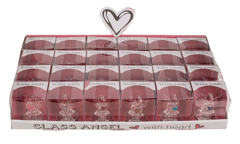 Ange en verre avec coeur, 5cm 12 ass.