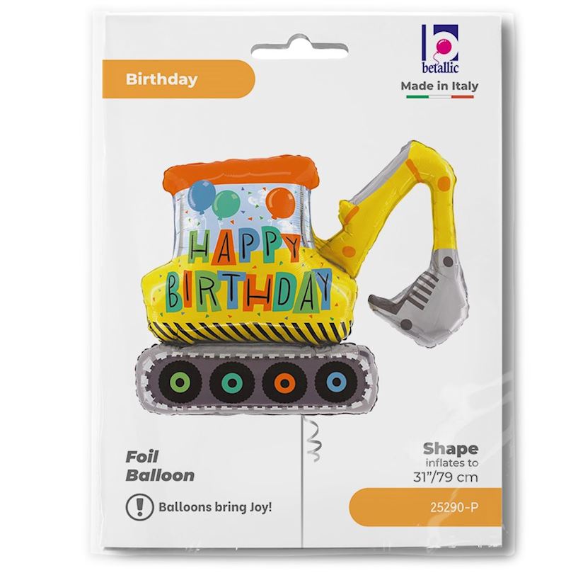 Ballon alum. Happy Birthday Excavateur emballé indiv.