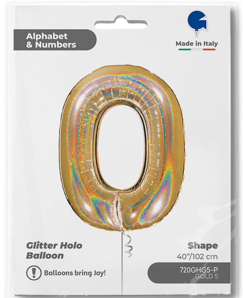Ballon alum. Numéro 0 en or 102 cm, holographique