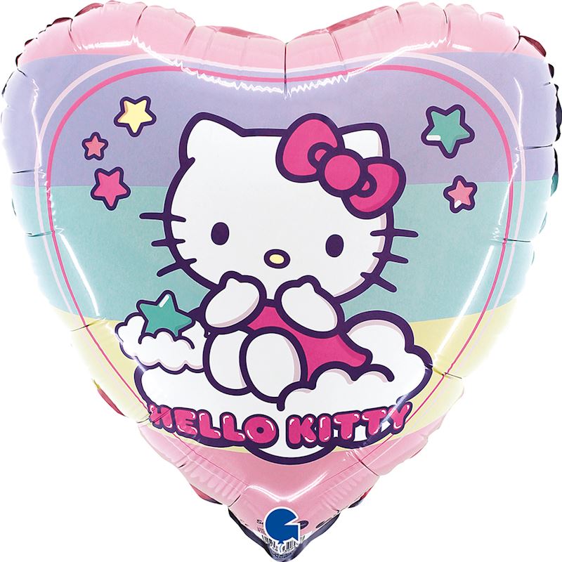 Ballon alum. en vrac Hello Kitty, Cœur arc-en-ciel, 49 cm