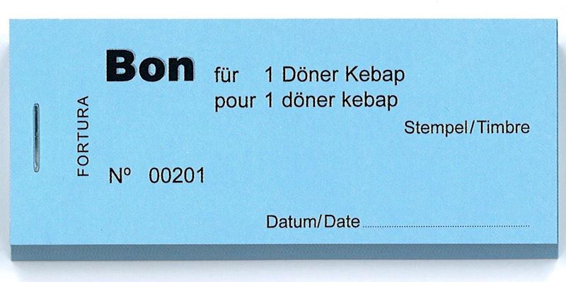 Bloc de bon avec 100 bons pour 1 döner kebap