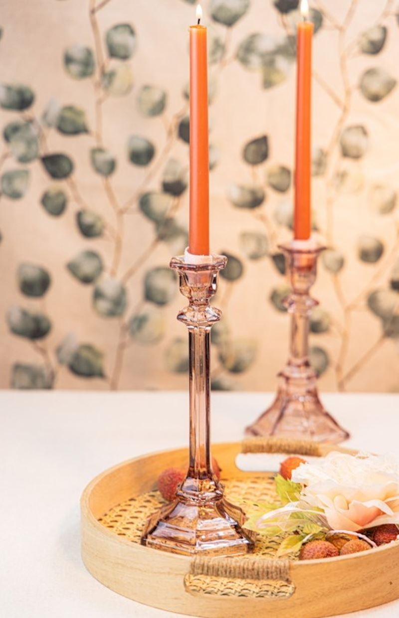Bougeoir transparent en verre rose d'ambre 10.5x24.5 cm