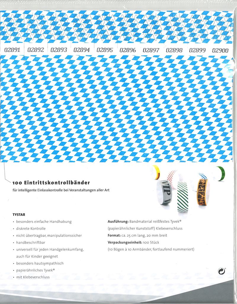Bracelets de contrôle Bavaria blanc 100 pcs.
