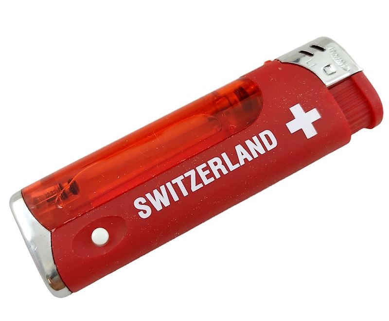 Briquet Switzerland rouge avec fenêtre de visualisation