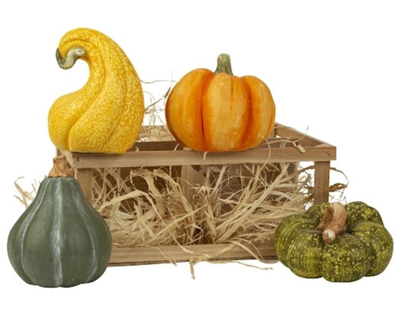 Citrouille décoratives 4 pcs. dans boîte en bois 25x22 cm
