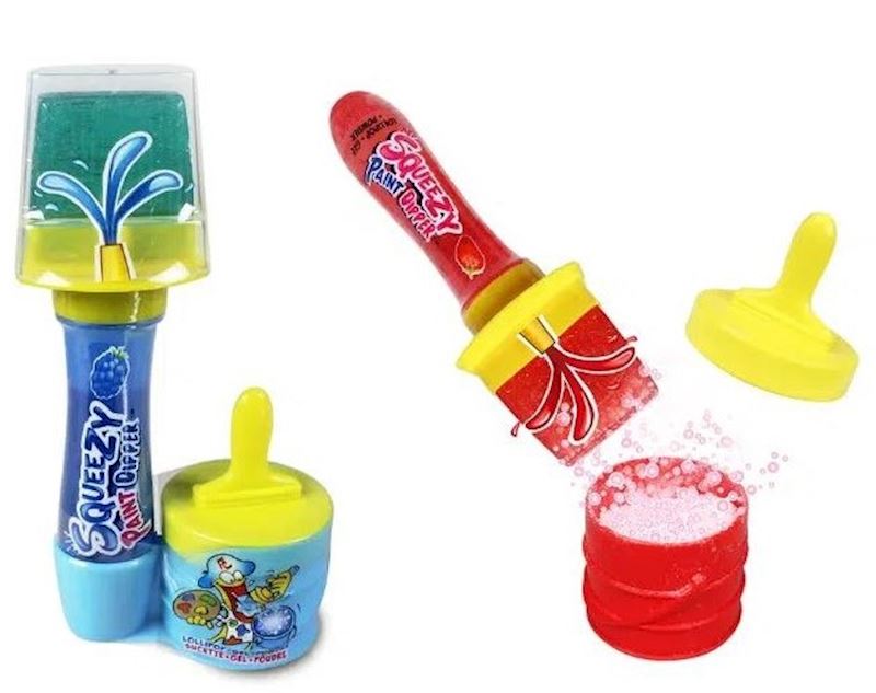 - Zutaten Gel: Glukosesirup, Wasser Säureregulatoren: Citronensäure (E330), Apfelsäure (E296), Kaliumsorbat (E202), Aromen, Farbstoffe: Echtes Karmin (E120), Brillantblau FCF (E133). Zutaten Lollipop: Zucker, Glukosesirup, Aromen, Farbstoffe: Kurkumin (E100), Echtes Karmin (E120), Brillantblau FCF (E133). Zutaten Sauerteigpulver: Dextrose, Säureregulatoren: Citronensäure (E330), Apfelsäure (E296), Aromen, Trennmittel: Magnesiumsalze von Speisefettsäuren (E470b), Farbstoffe: Kurkumin (E100), Echtes Karmin (E120), Brillantblau FCF (E133)