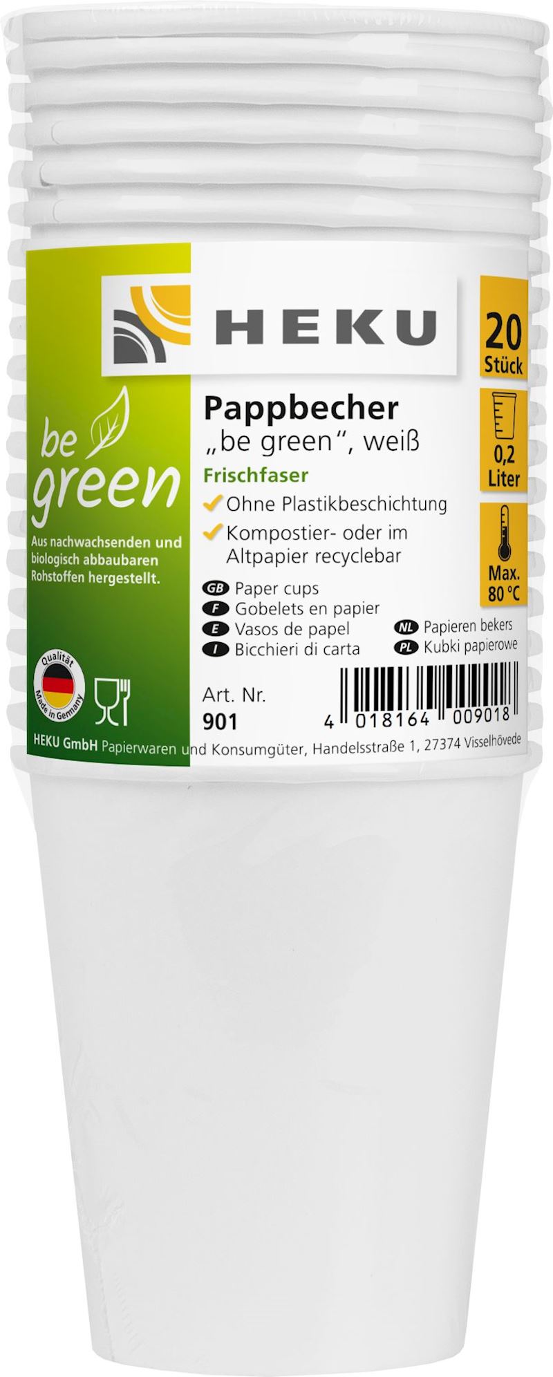 Gobelets en carton à base de fibres fraîches 2 dl 20 pcs