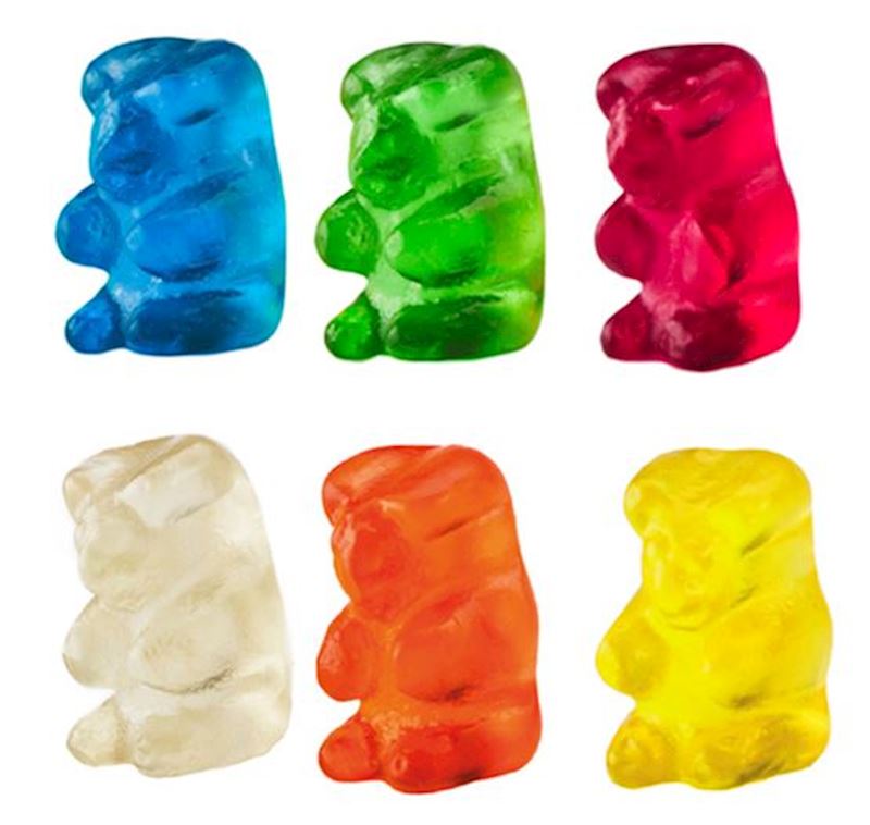 - Glukosesirup, Wasser, Zucker, Stärke, Rindergelatine, Säuerungsmittel: Citronensäure (E330), Überzugsmittel: Carnaubawachs (E903), Aromen, Säureregulator: Natriumcitrat (E331), Farbstoffe: Kurkumin (E100), Natrium-Kupfer-Chlorophyllin (E141ii), Paprikaextrakt (E160c), Anthocyane (E163)