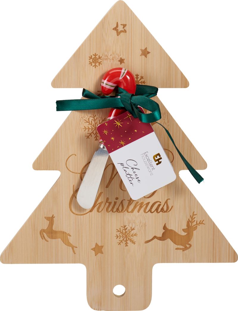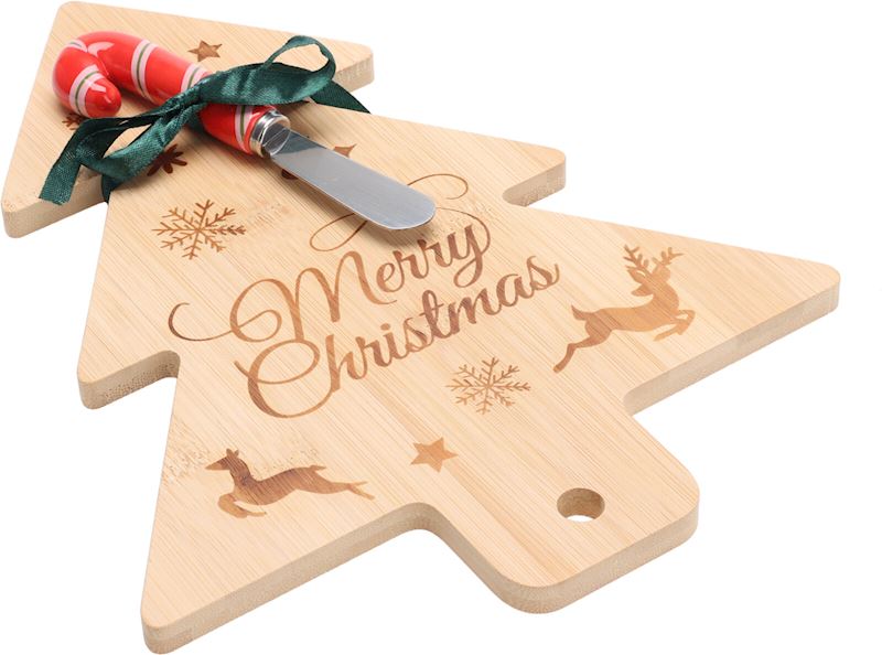 Planche pour fromage en bois forme de sapin, avec couteau