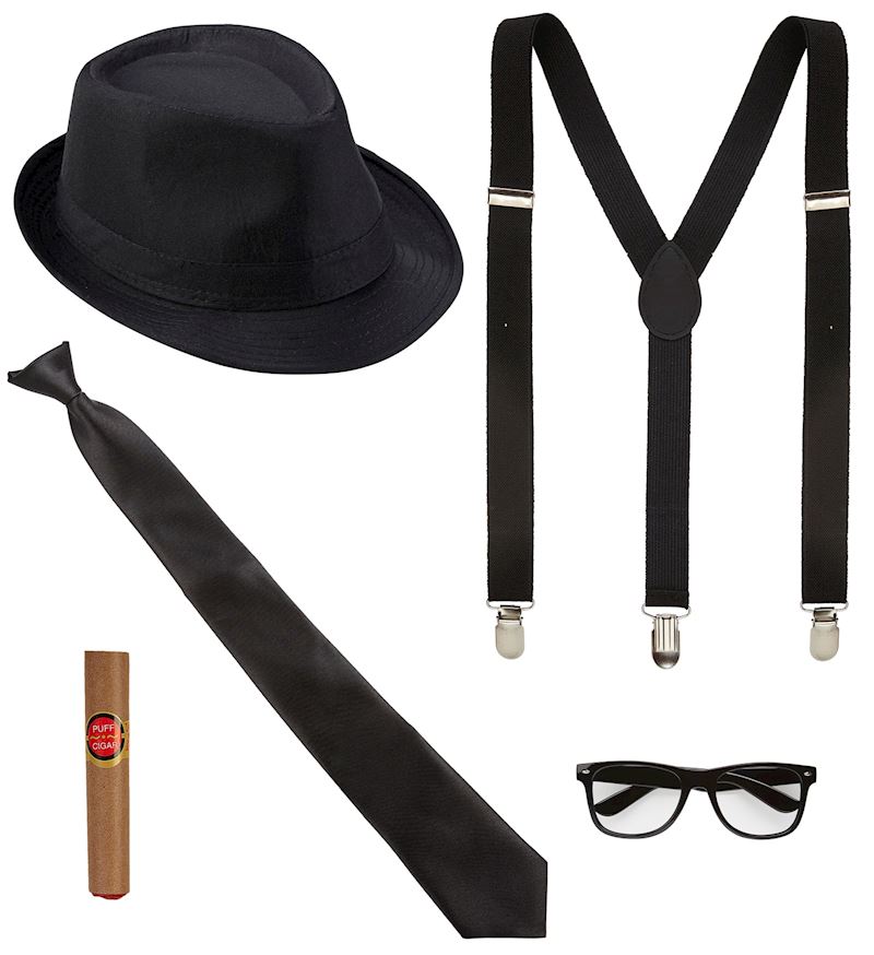 Roi du Blues chapeau, cravate, bretelles, lunettes, cigare