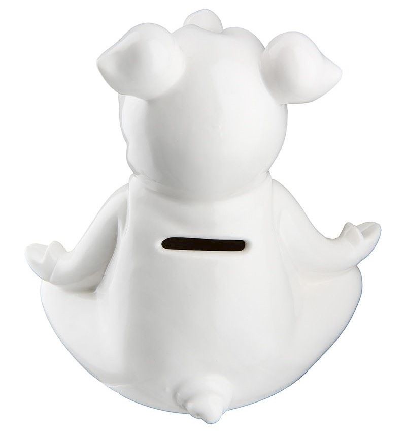 Tirelire Yoga cochon porcelaine blanc 11 cm