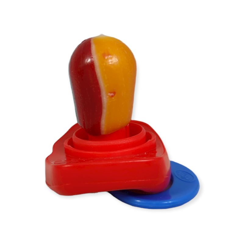 - Zucker, Glukosesirup, Wasser, Säuerungsmittel (E330), Aromen, Farbstoff (E133, E160a, E163).