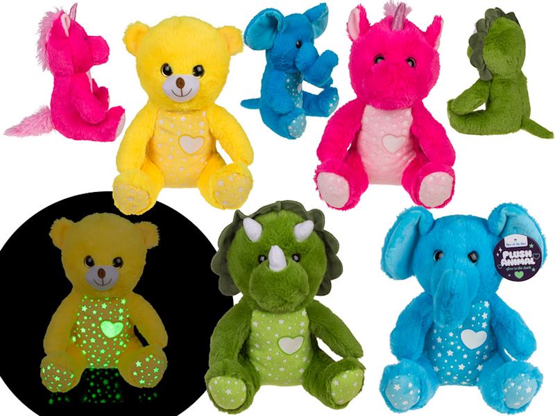 Animaux en peluche glow in the dark, coeur 26 cm 4 ass