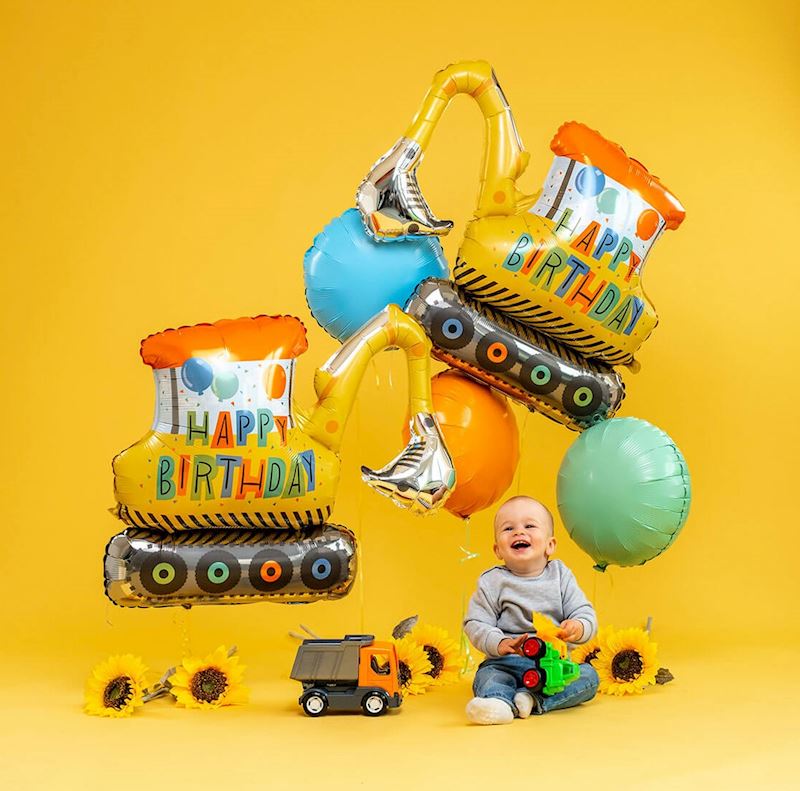 Ballon alum. Happy Birthday Excavateur emballé indiv.