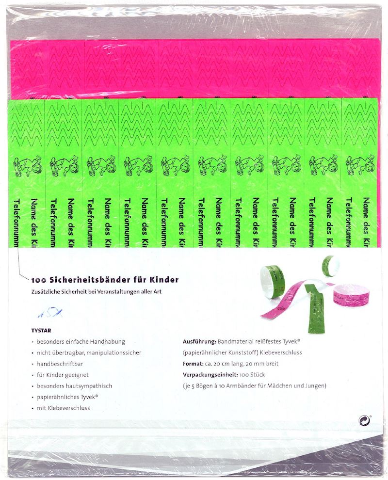 Bracelets de contrôle pour enfants rose vif et vert 100 pcs. blister