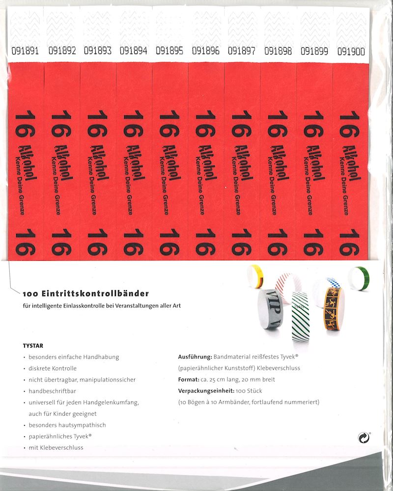 Bracelets de contrôle pour jeunesse vert 100 pcs. blister