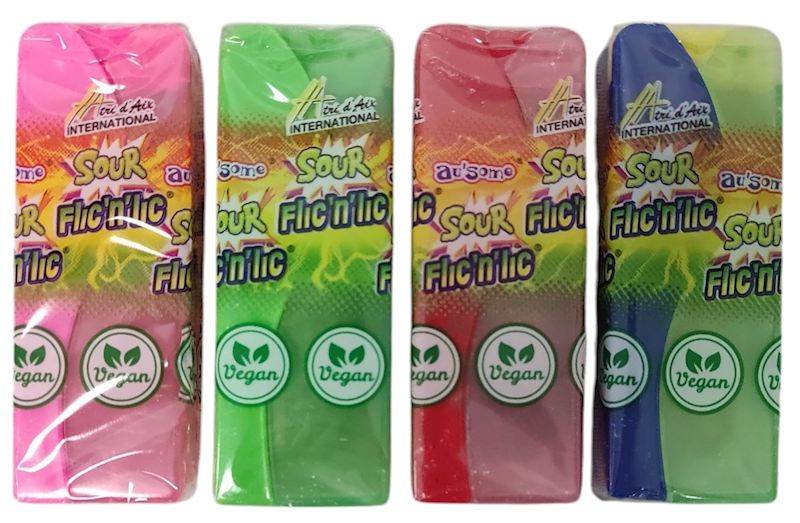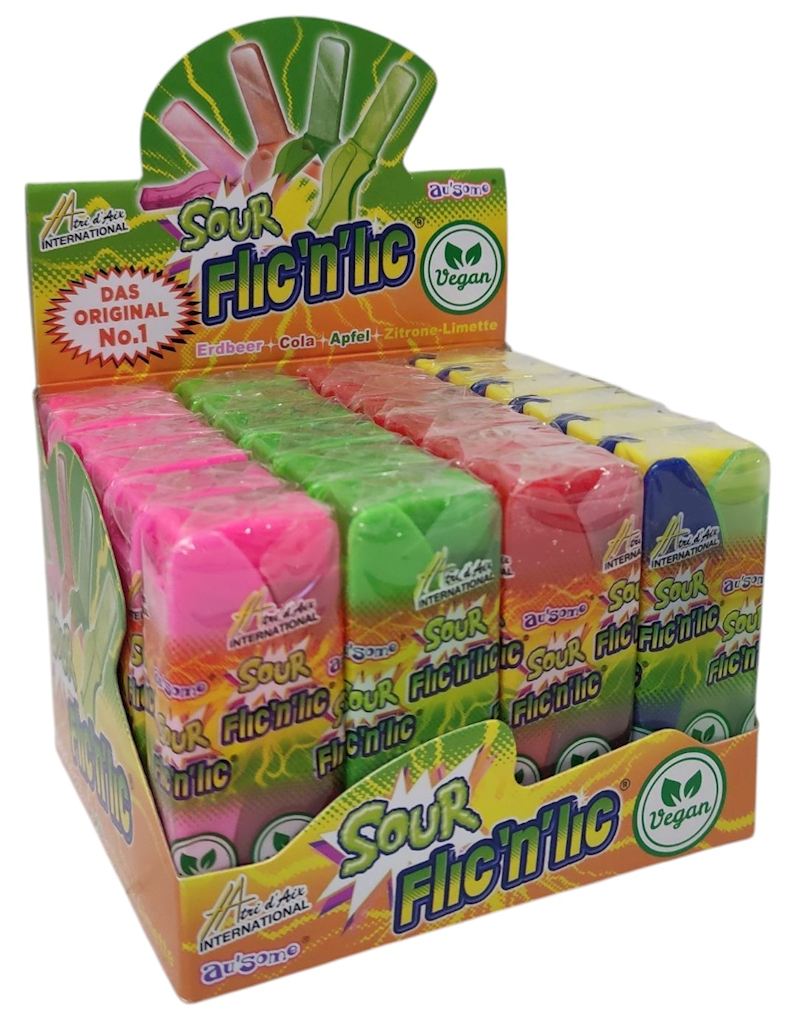 - Zucker, Glukosesirup, Säuerungsmittel: Milchsäure (E270), Citronensäure (E330), Apfelsäure (E296); Säureregulator: Natriumlactat (E325), Natriumcitrat (E331); Aromen, Farbstoffe: Erdbeere: Anthocyane (E163), Apfel: Kurkumin (E100), Brillantblau (E133), Cola: Kurkumin (E100), Brillantblau FCF (E133), Anthocyane (E163), Zitronen-Limette: Kurkumin (E100)